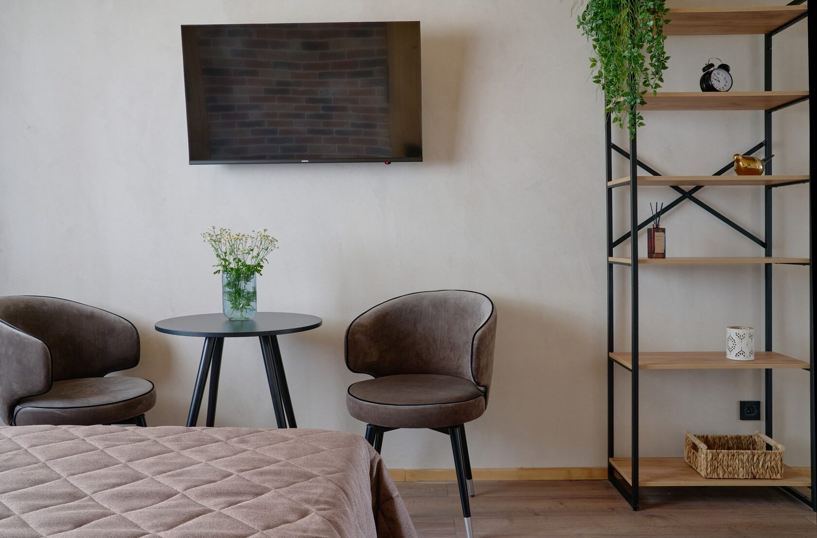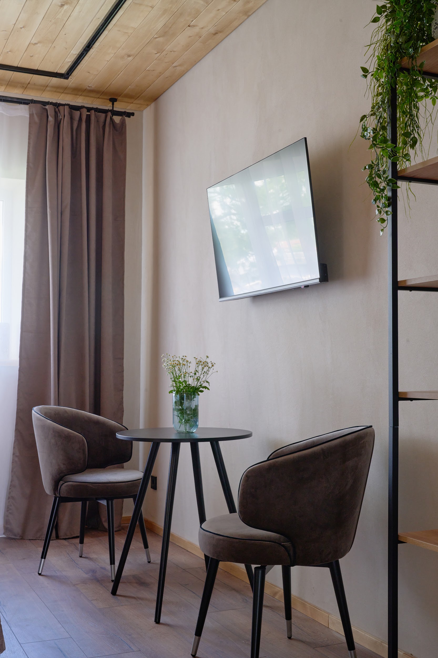 | Номер 2-местный Лофт с кухней | 28 кв.м. | 2 чел. | Мебель (вешалка, зеркало, кровать двуспальная, стол, стулья, шкаф), Мини-кухня, Оборудование (микров... | |