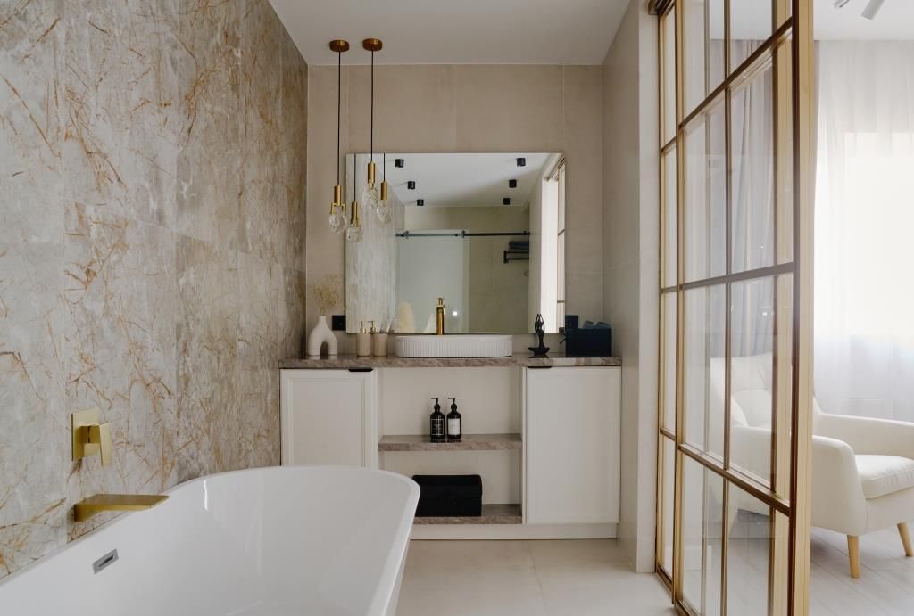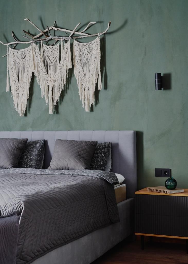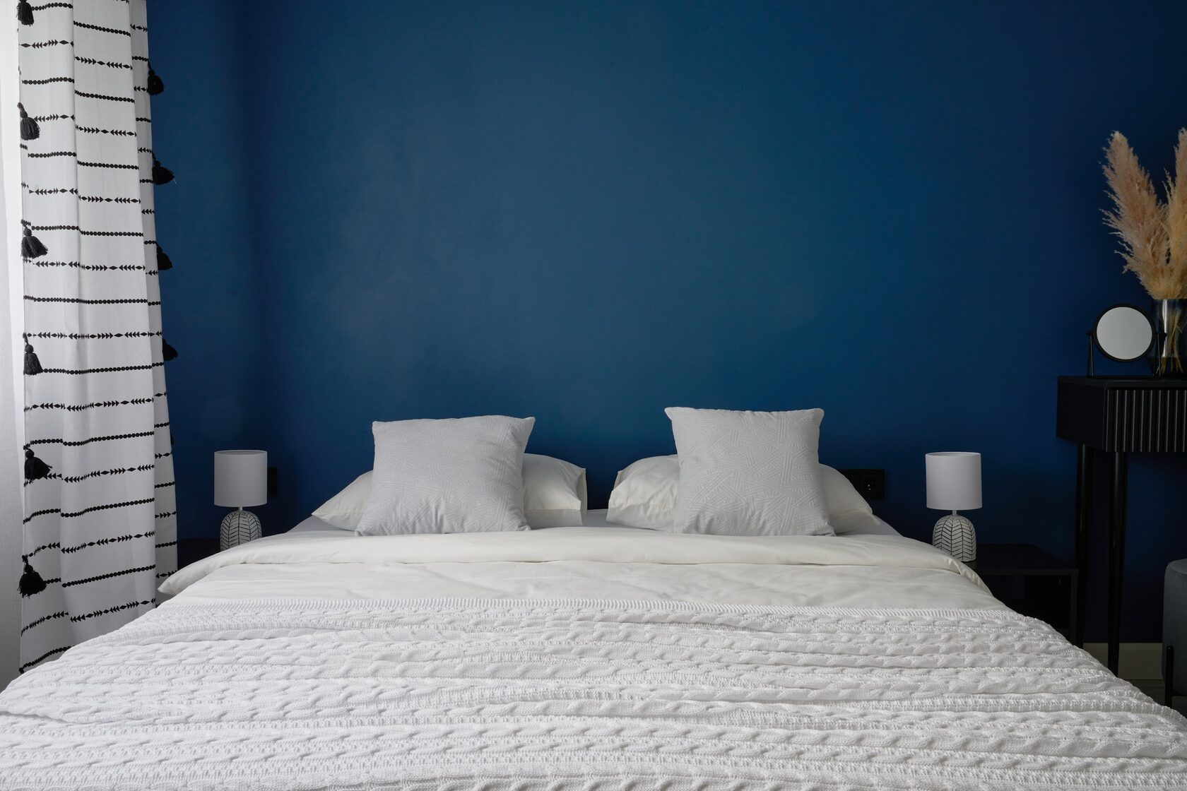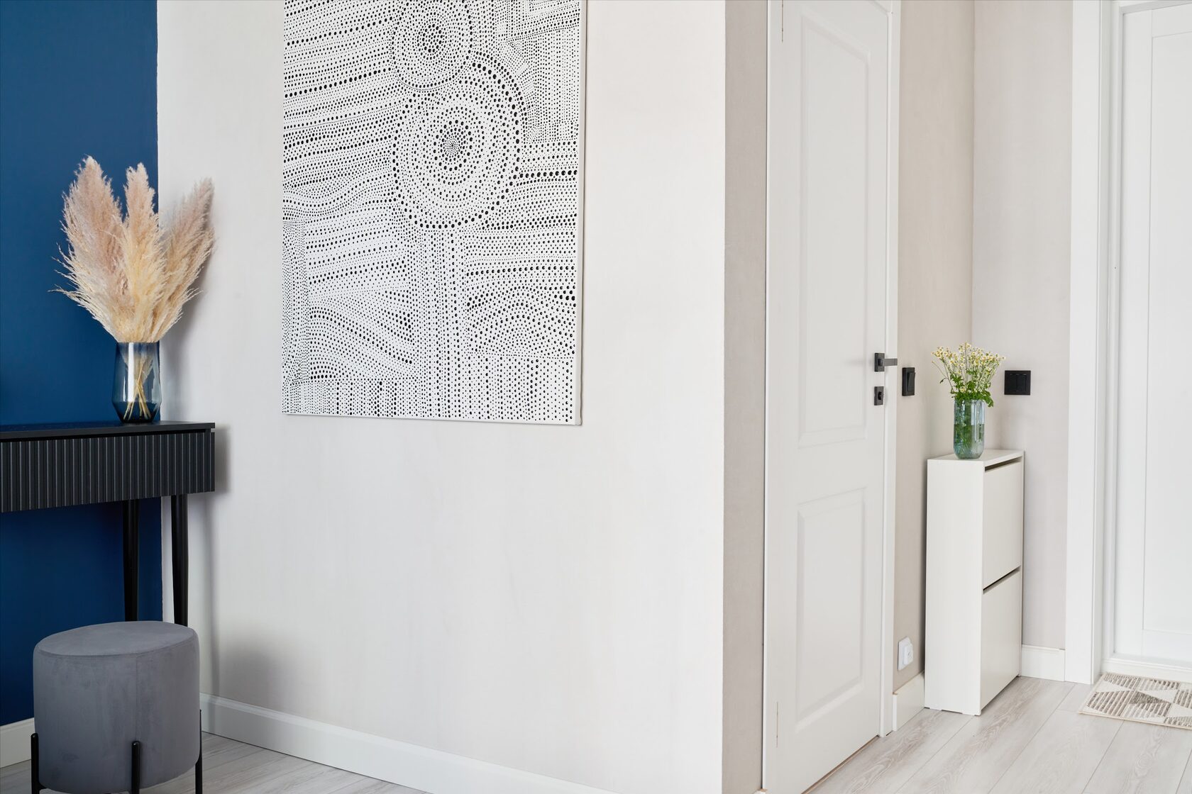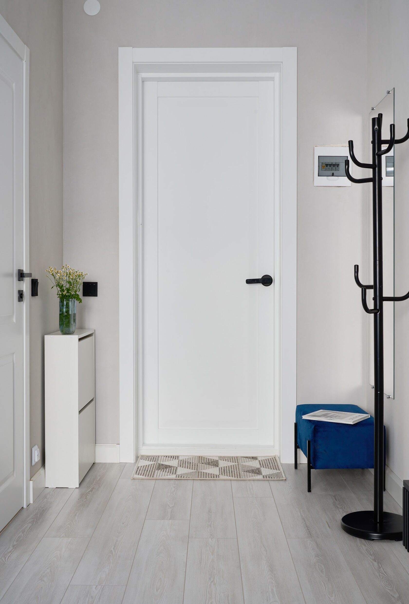 - Мебель: вешалка, зеркало, кровать двуспальная, прикроватные тумбочки, стол, стулья, шкаф