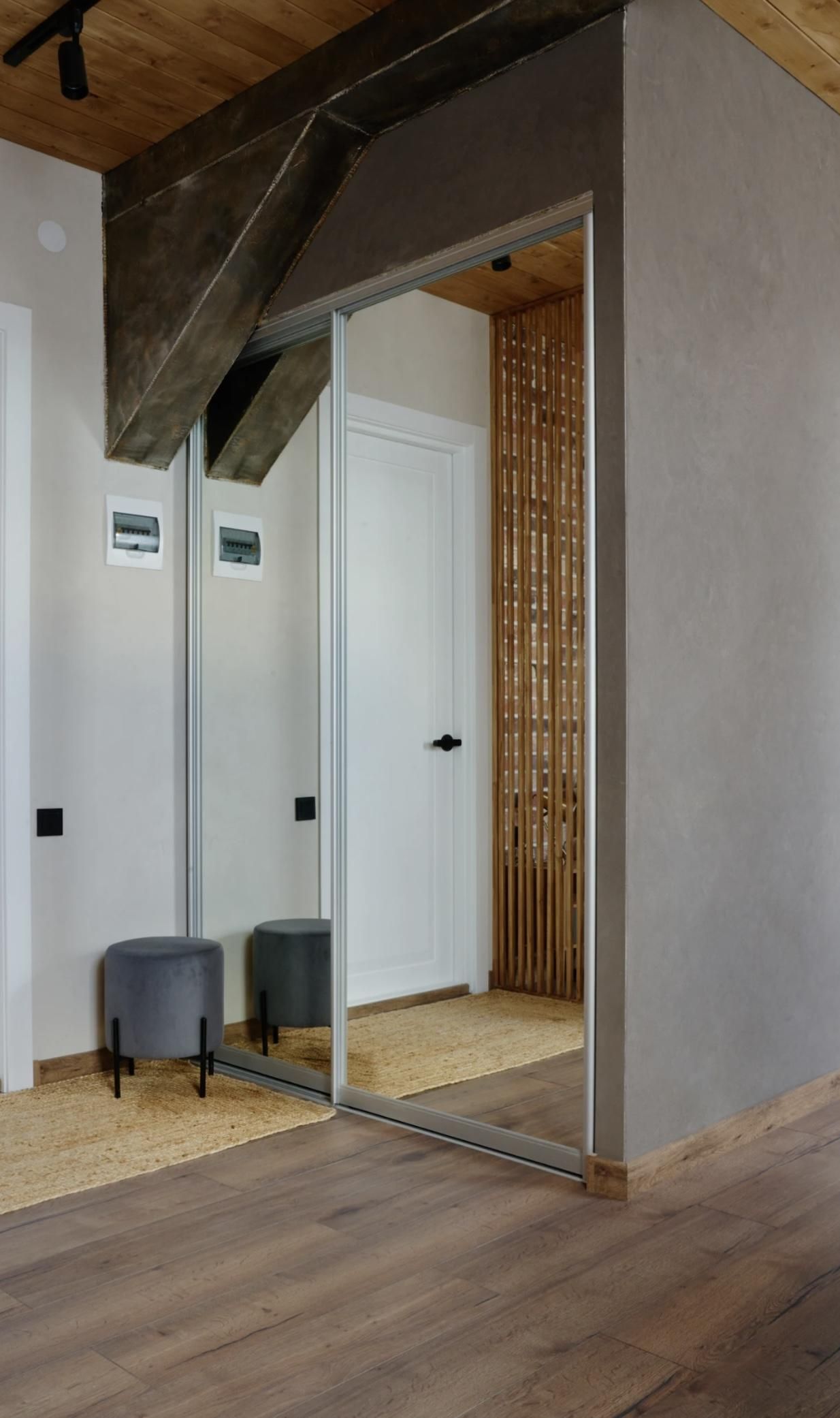 - Мебель: вешалка, зеркало, кровать двуспальная, стол, стулья, шкаф