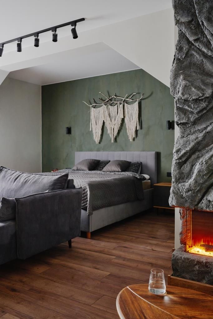 - Мебель: вешалка, диван, зеркало, кровать двуспальная, прикроватные тумбочки, стол, стулья, шкаф